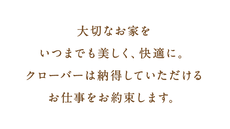 家は人生の半分以上を過ごすと言われております。だからこそ、お客様に納得していただかなくてはなりません。お客様に喜んでいただけるよう、クローバーは様々なサービスを行なっております。